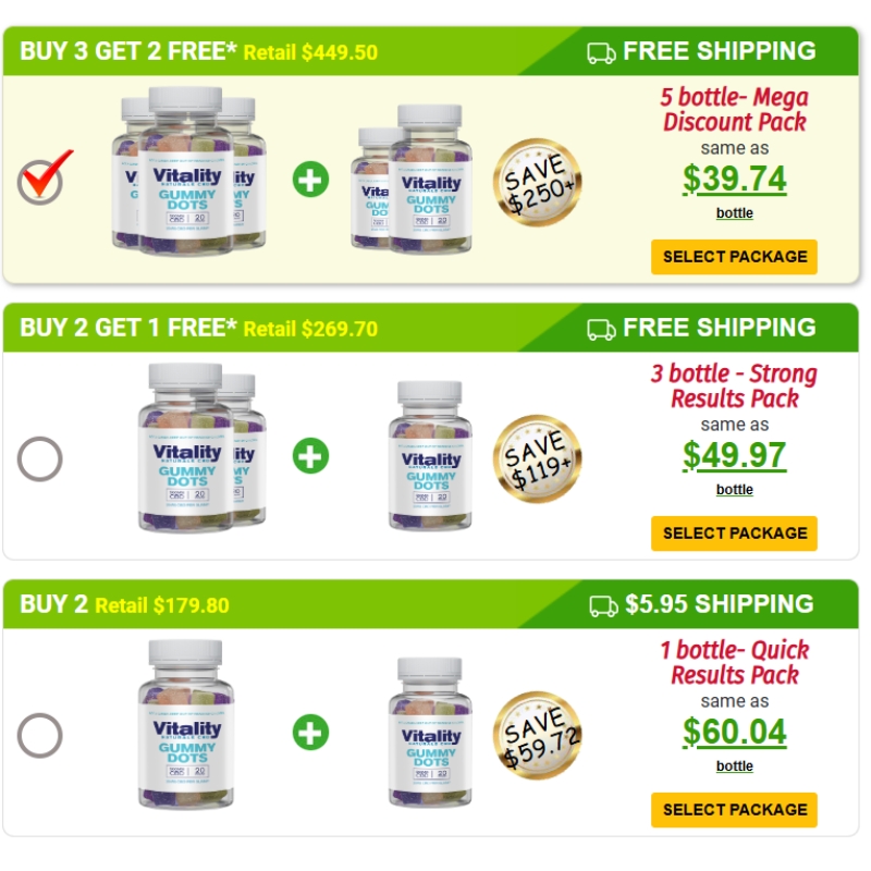 Understanding the pricing structure of Vitality Naturals CBD Gummy Dots is essential for consumers looking to make an informed purchase. The product is available in several package options, allowing users to choose the one that best fits their needs and budget. Here are the current pricing details: